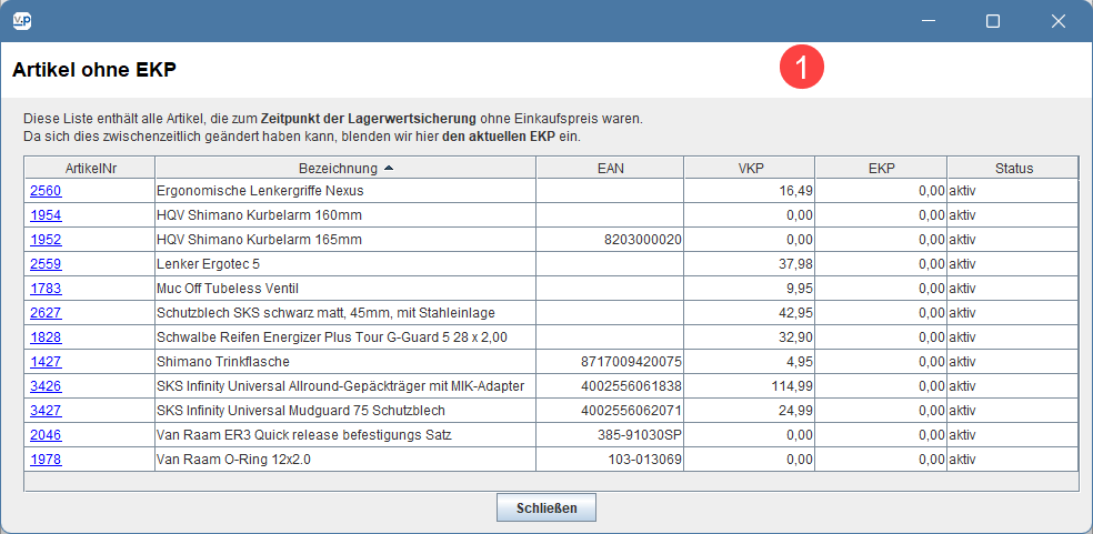 Wird ein eigentlich ausgelisteter Artikel erneut bestellt, dann listet velo.port ihn ab sofort automatisch wieder ein, so dass er im Sortiment sichtbar wird.