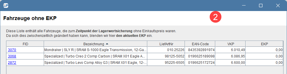 In der Artikelverwaltung und in der Fahrzeugverwaltung werden dir ab sofort neben dem in der Fahrradbranche üblichen Kalkulationsfaktor auch weitere Margeninformationen angezeigt: