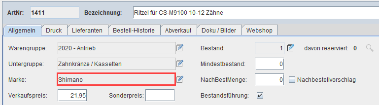 Markenverwaltung für Artikel