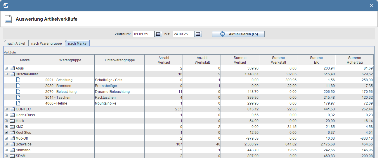 Aktuell kannst du damit schon einmal deine Umsätze nach Marke aufschlüsseln:
